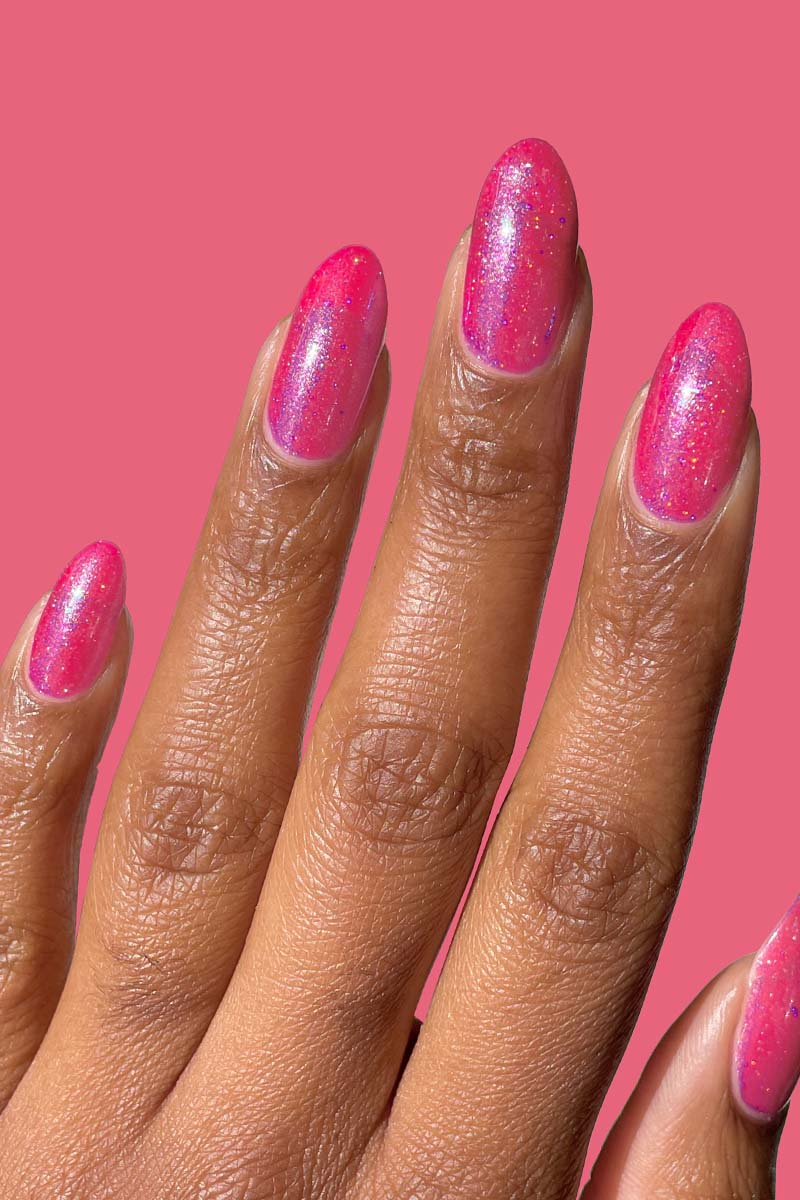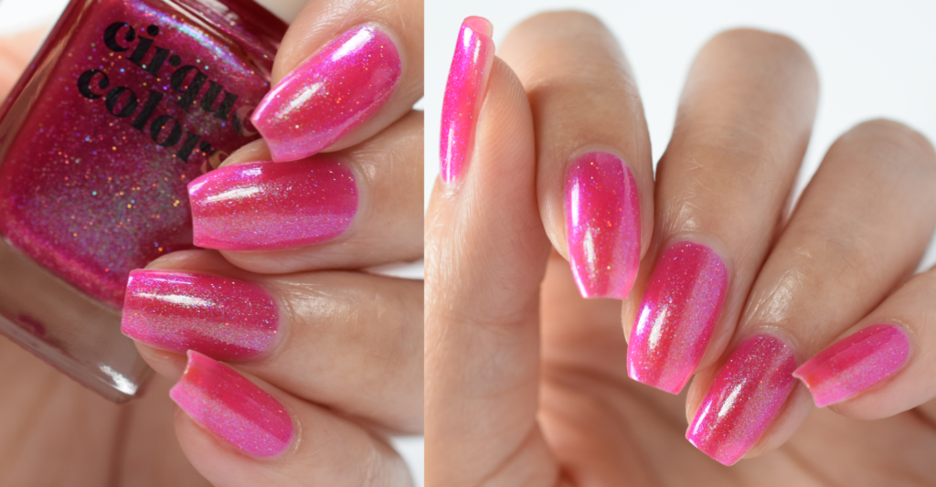 Cirque Colors Pele este o nuanta vibranta de roz magenta, cu shimmer iridescent si particule holografice.