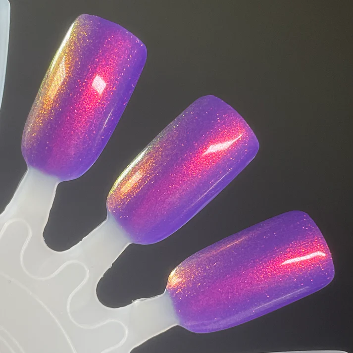 Dam Nail Polish Roe, Roe, Roe Your Vote este o nuanta de mov, cu shimmer multicrom.