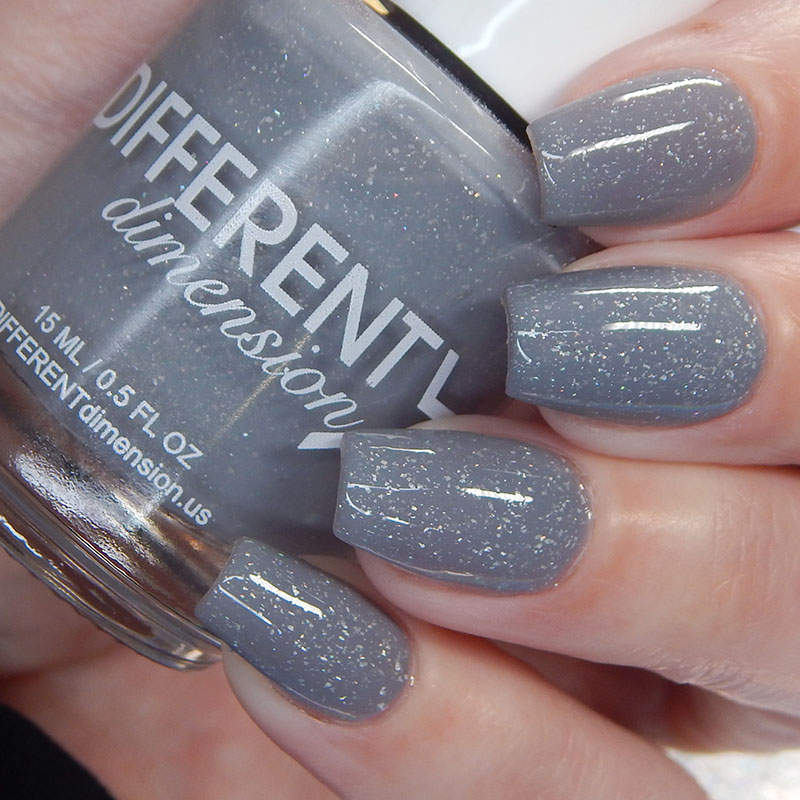 Different Dimension Smells Like Tea Spirit este o nuanta de gri jelly, cu flakes holografici.