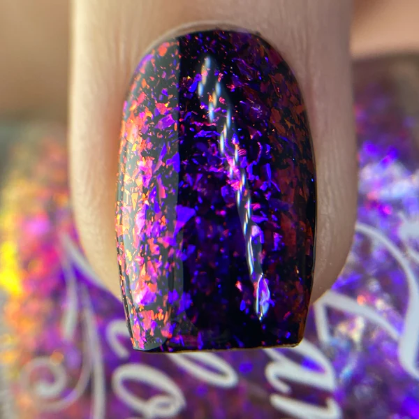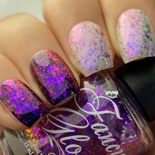 Fancy Gloss Mesmer este un lac transparent, cu flakes iridescenti.