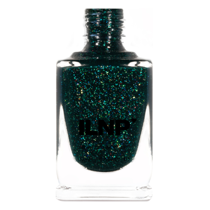 ILNP Noel este o nuanta de verde, cu flakes metalici colorati.