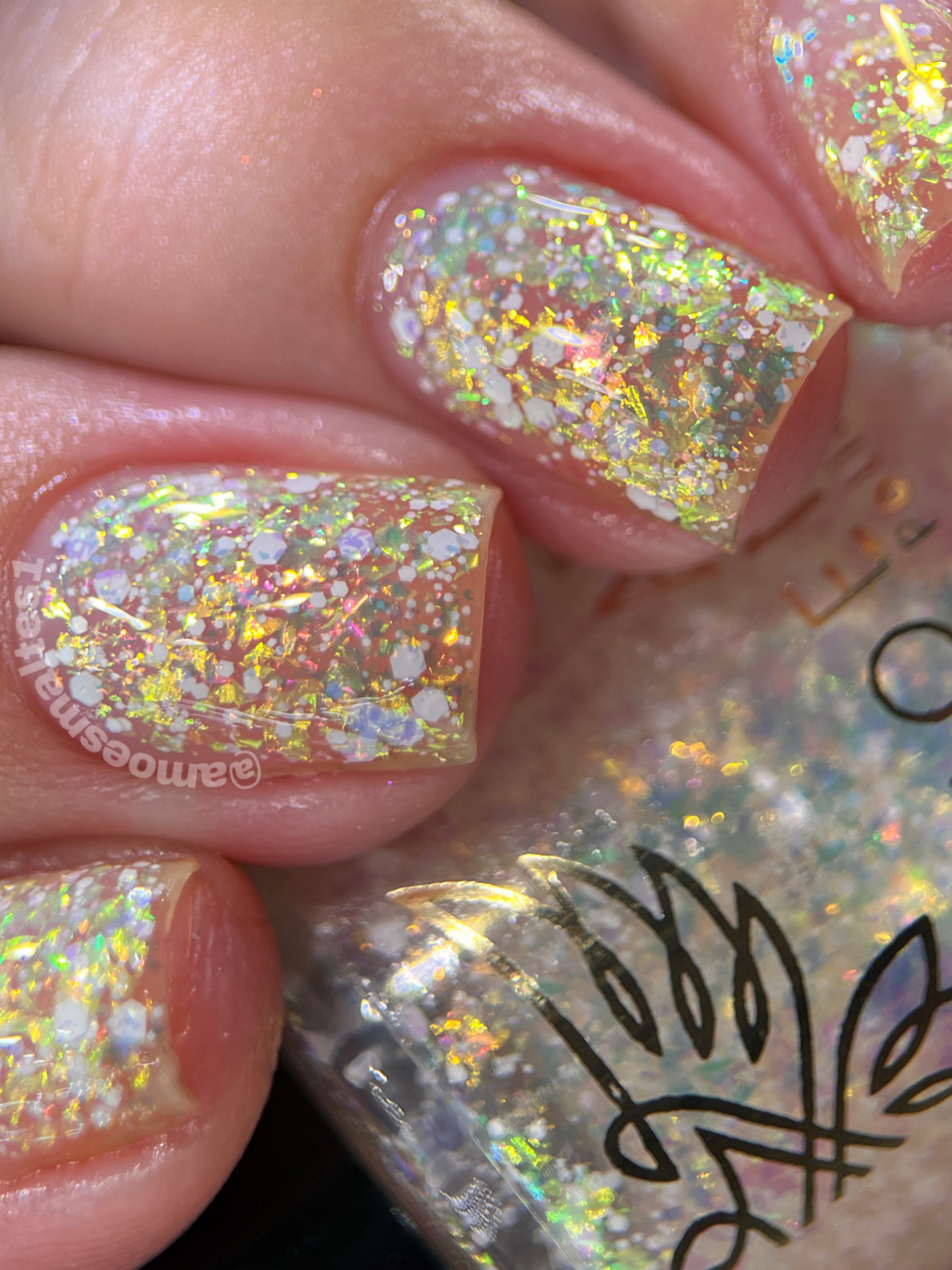 Phoenix Indie Aerial Phenomena este o baza transparenta, cu flakes iridescenti si glitter alb.
