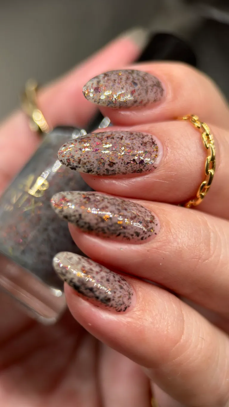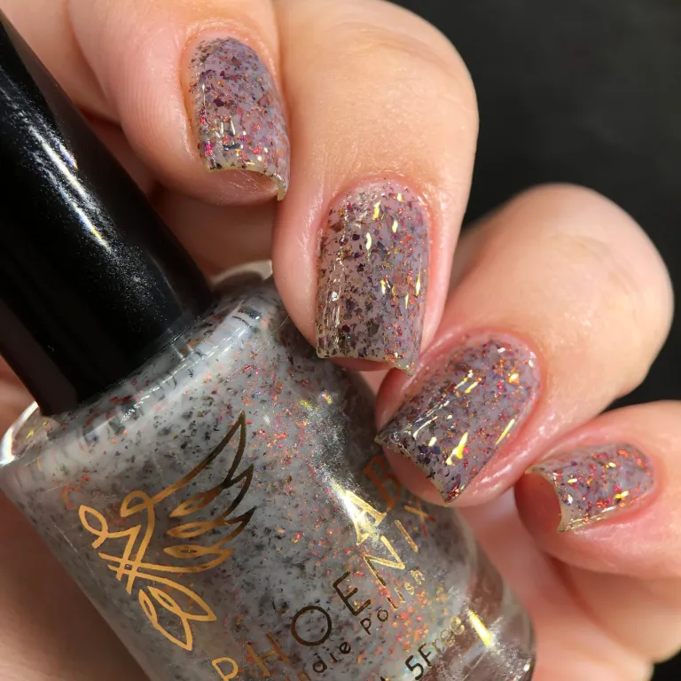 Phoenix Indie Marceline are o baza gri, cu flakes cu efect multicrom.