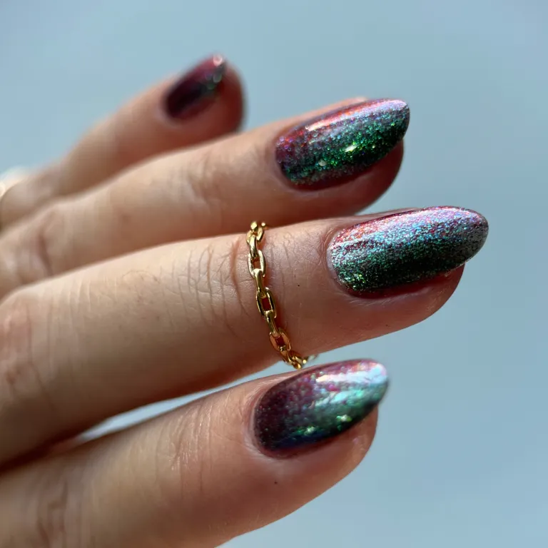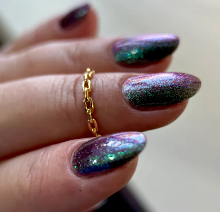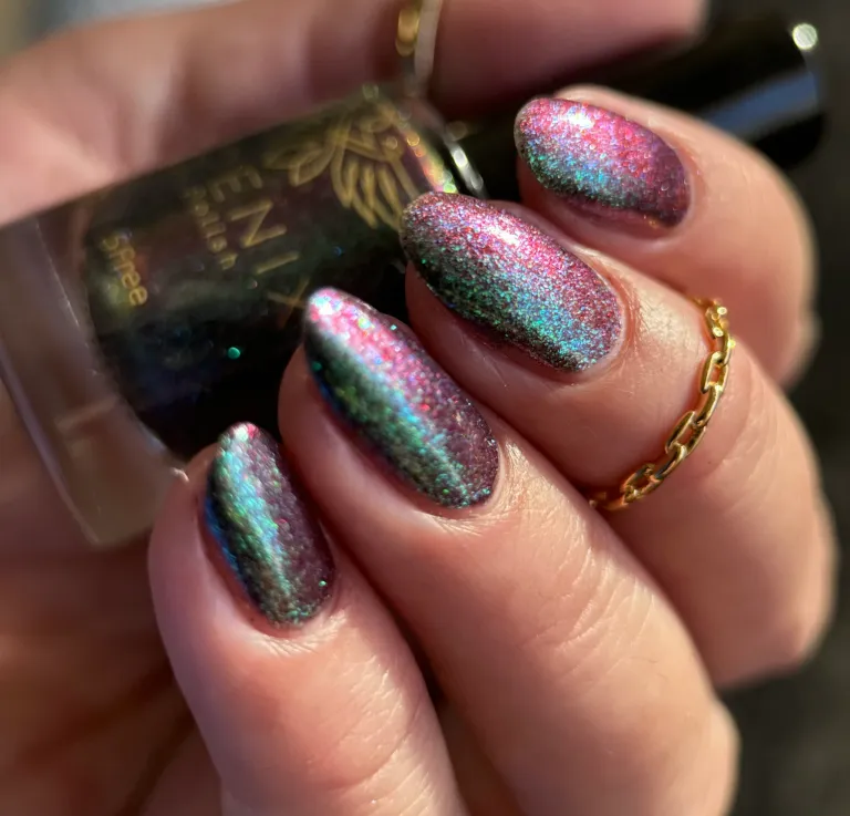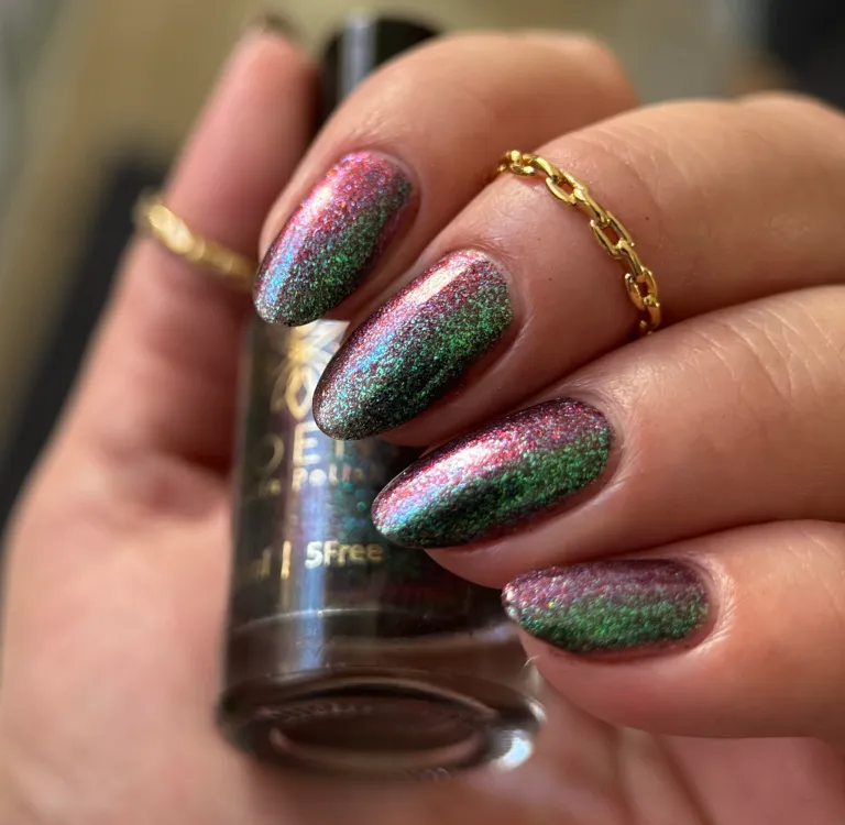 Phoenix Indie Metamorph este o nuanta ultra crom, cu flakes albastri/verzi.