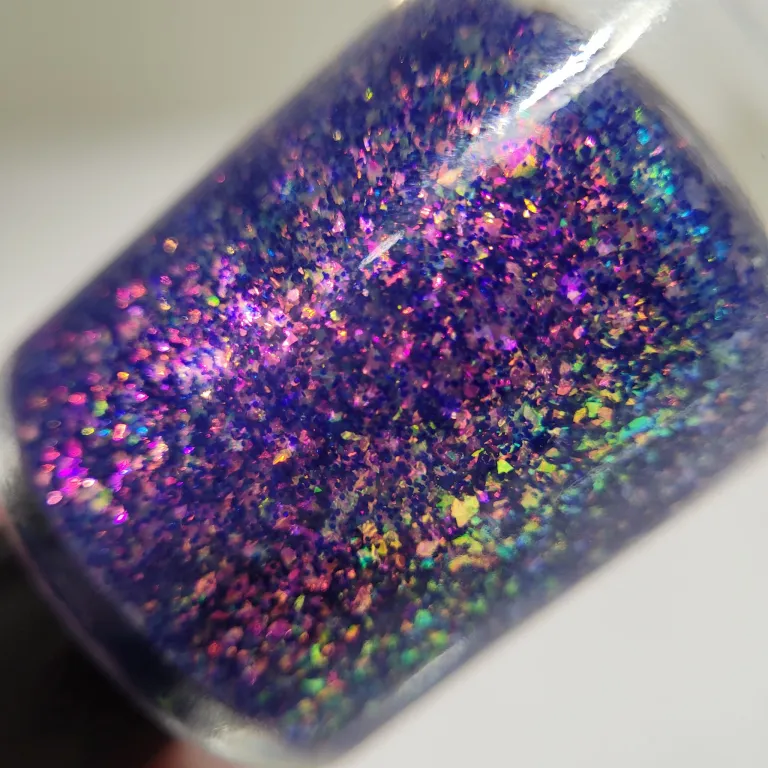Phoenix Indie Oops 5 are o baza transparenta, flakes iridescenti si glitter mov.