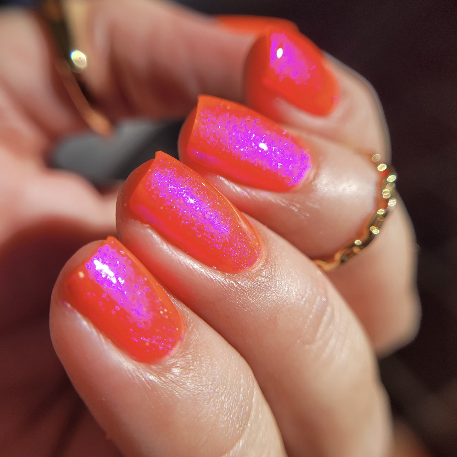 Phoenix Indie She's a President este o nuanta de roz corai, cu shimmer violet.