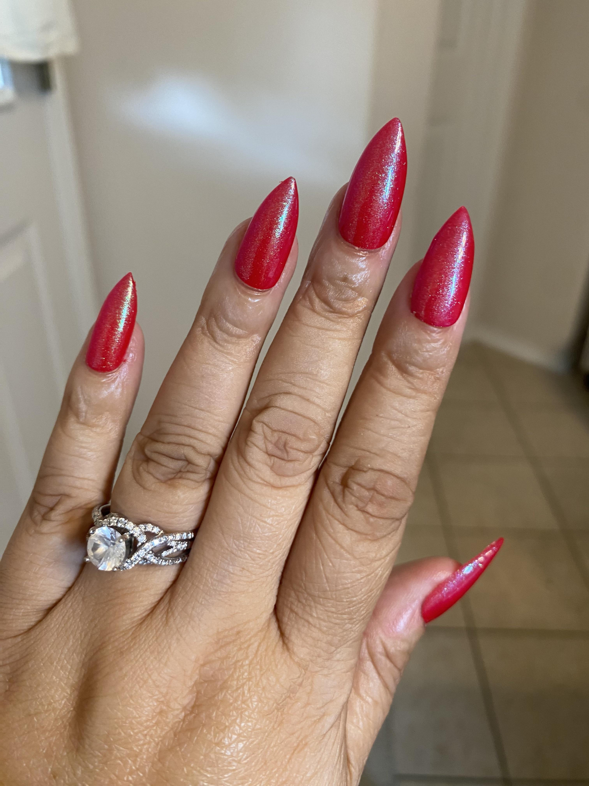 Sassy Sauce CHI Sexy Bish este o nuanta de rosu, cu shimmer multicrom.