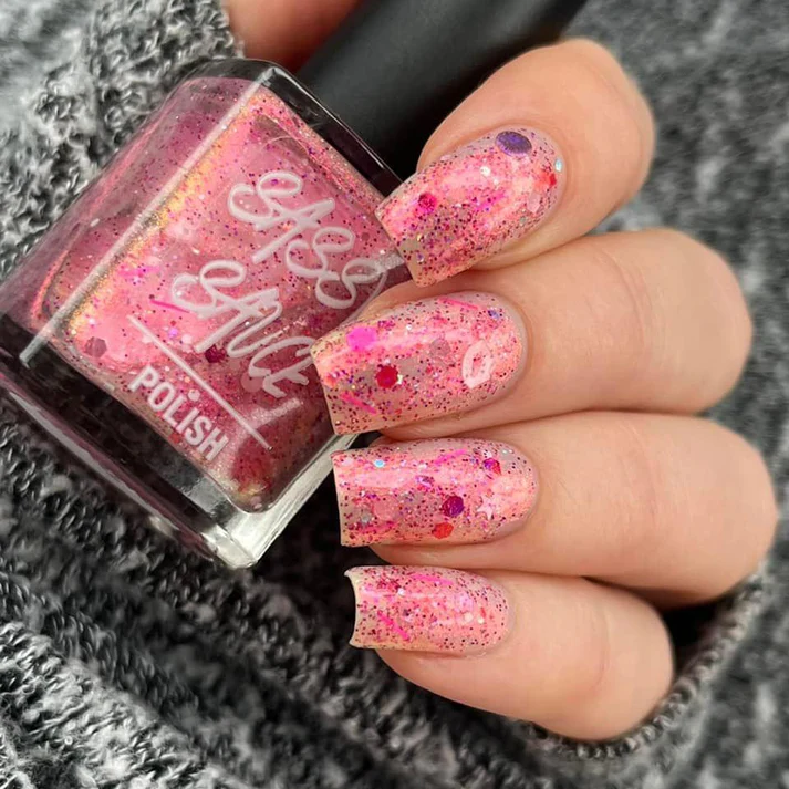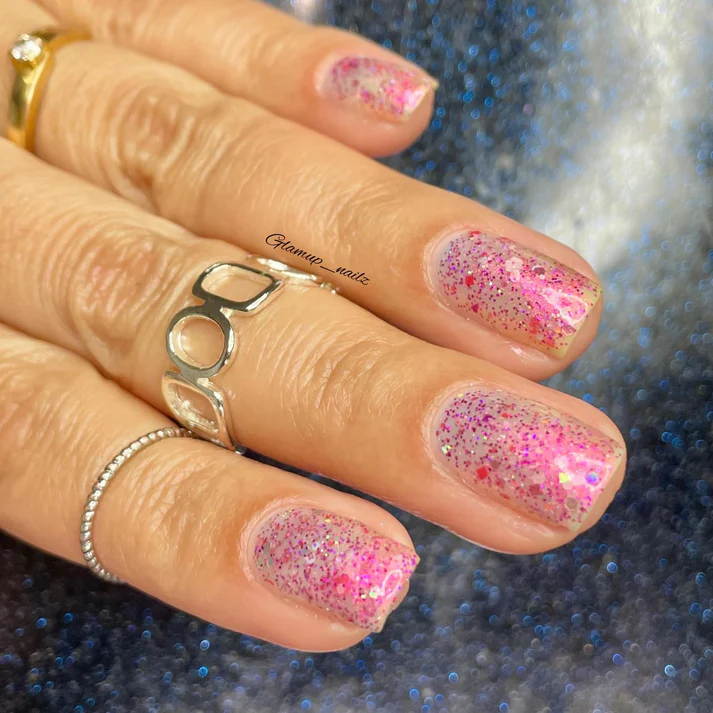 Sassy Sauce S.W.A.K are o baza roz translucid, cu shimmer duocrom si mai multe feluri diferite de glitter.