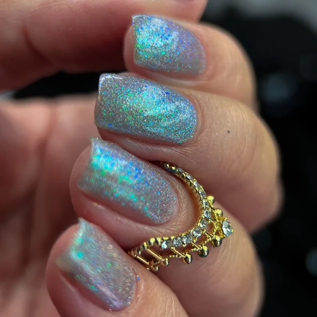 Din cauza glitter-ului, se usuca usor texturat. Pentur un aspect lucios, este nevoie de top coat.