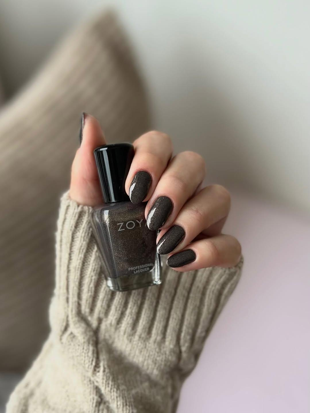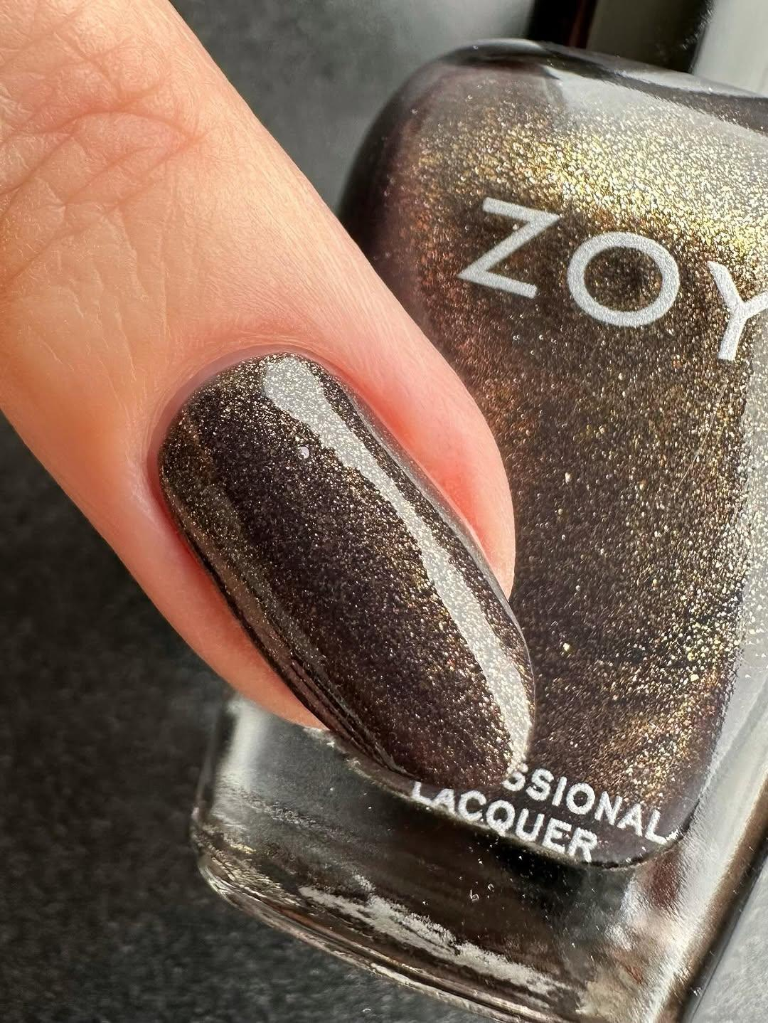 Zoya Emery este o nuanta de culoarea cafelei, cu efect metalic auriu si glitter.